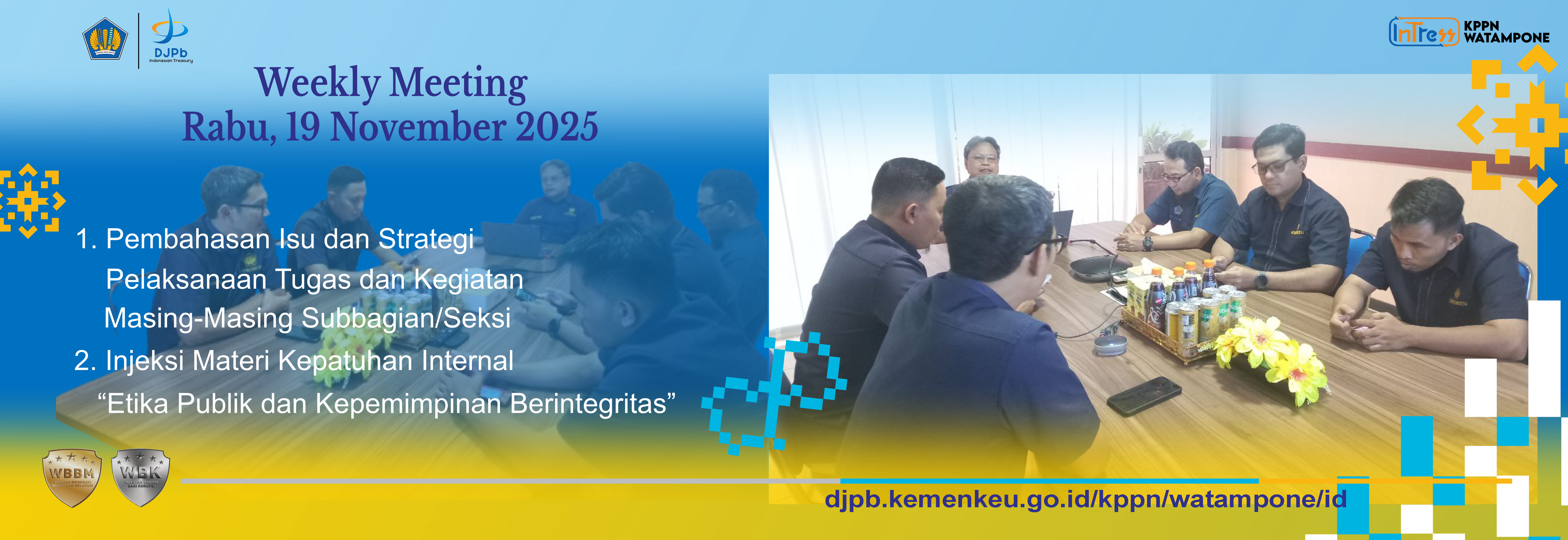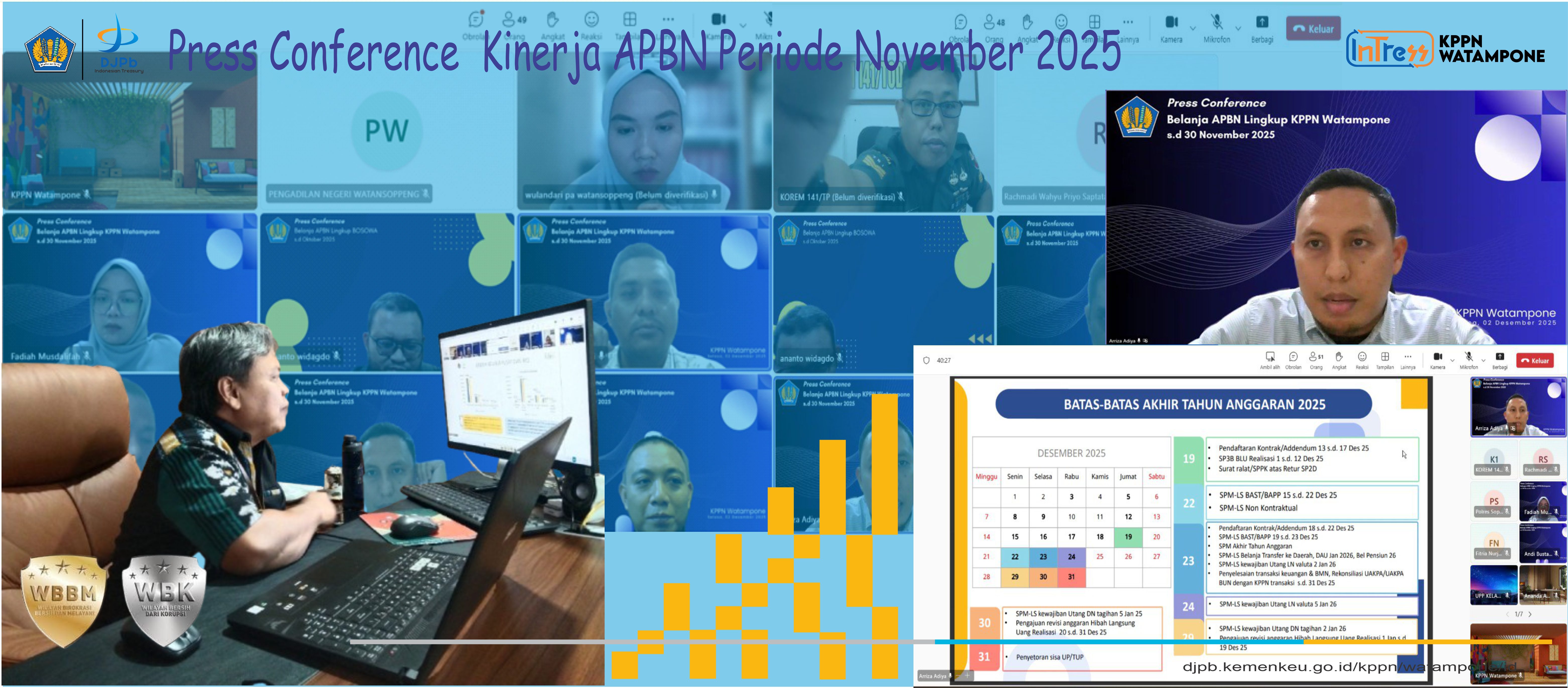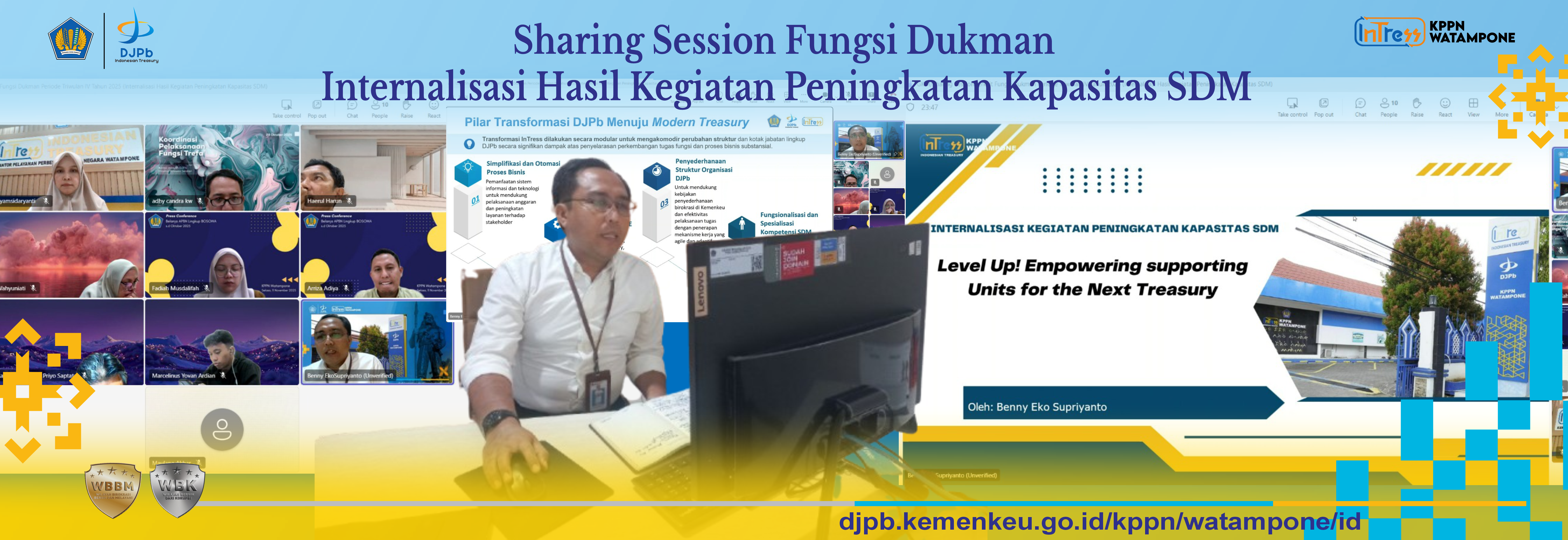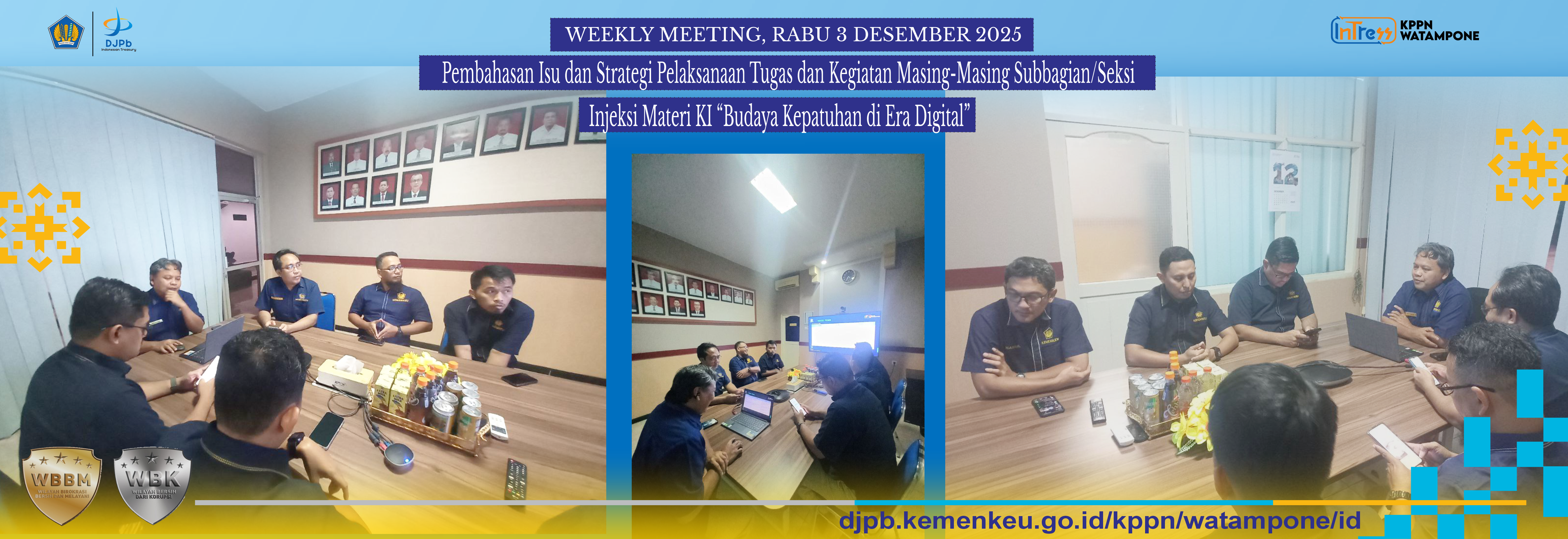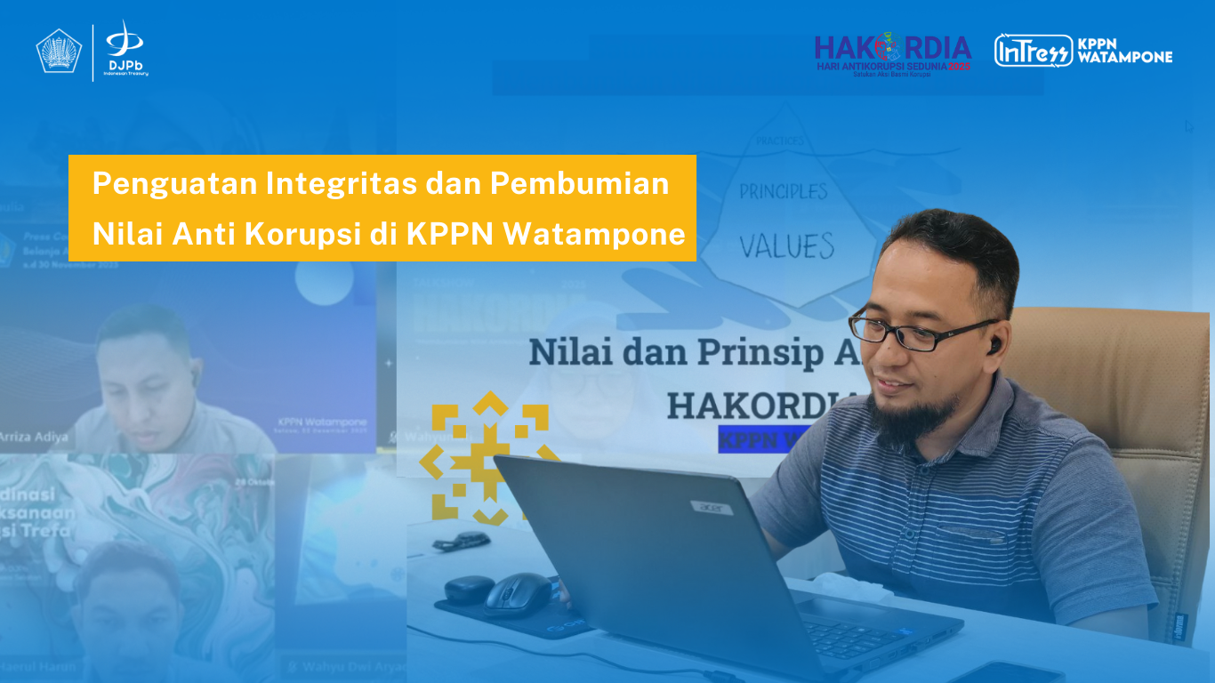 Kantor Pelayanan Perbendaharaan Negara (KPPN) Watampone menyelenggarakan GKM/Sharing Session Triwulan IV Tahun 2025 dengan tema “Satukan Aksi Basmi Korupsi – Membumikan Nilai Antikorupsi pada Birokrasi” dalam rangka memperingati Hari Antikorupsi Sedunia (HAKORDIA) 2025. Kegiatan ini berlangsung secara daring melalui Microsoft Teams pada Selasa (9/12/2025) pukul 16.00–17.00 WITA dan diikuti seluruh pegawai KPPN Watampone.