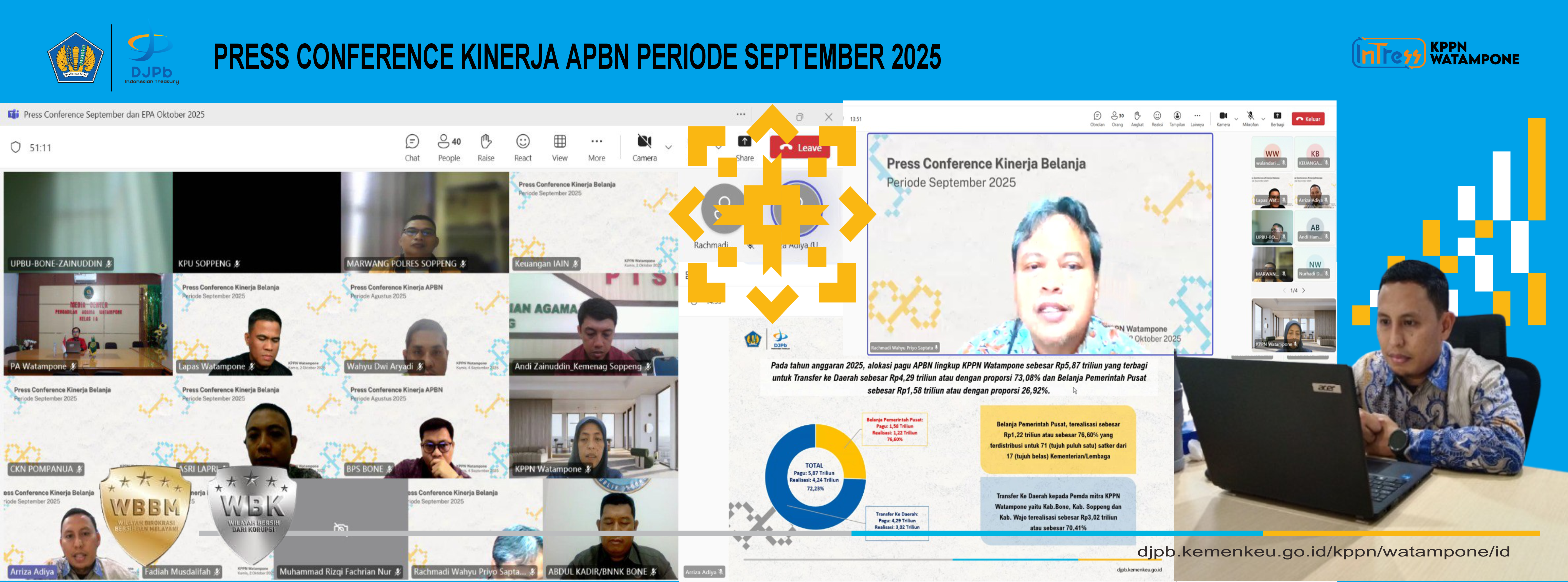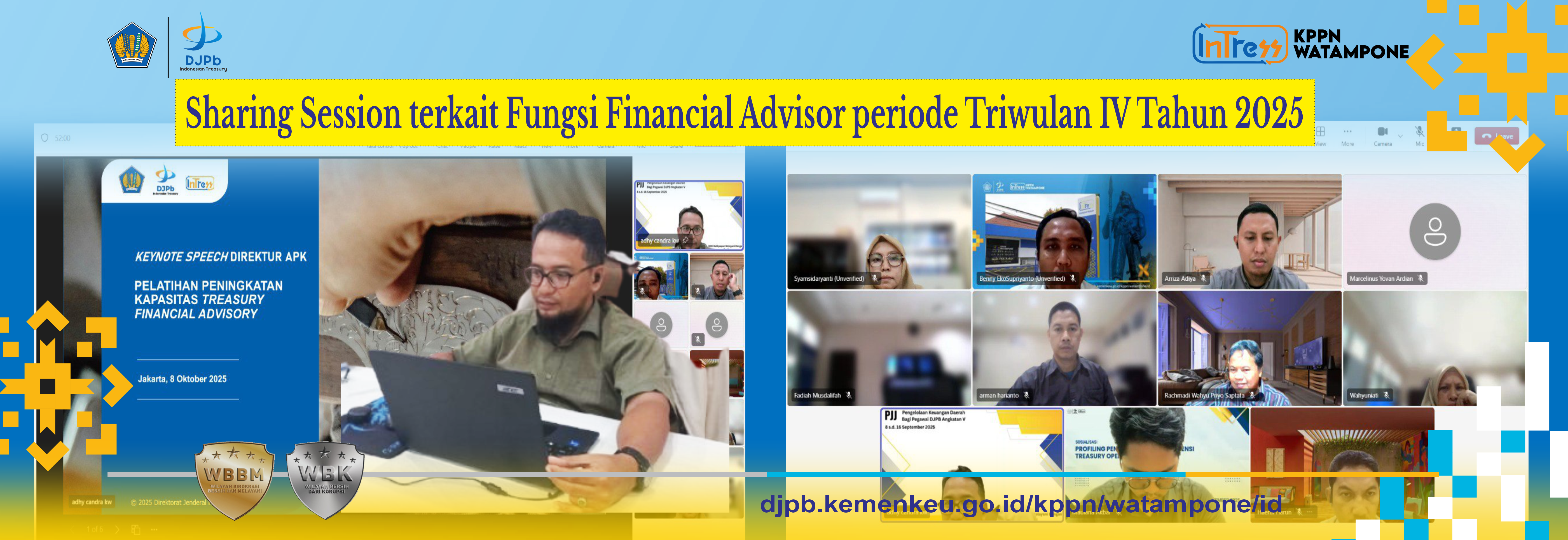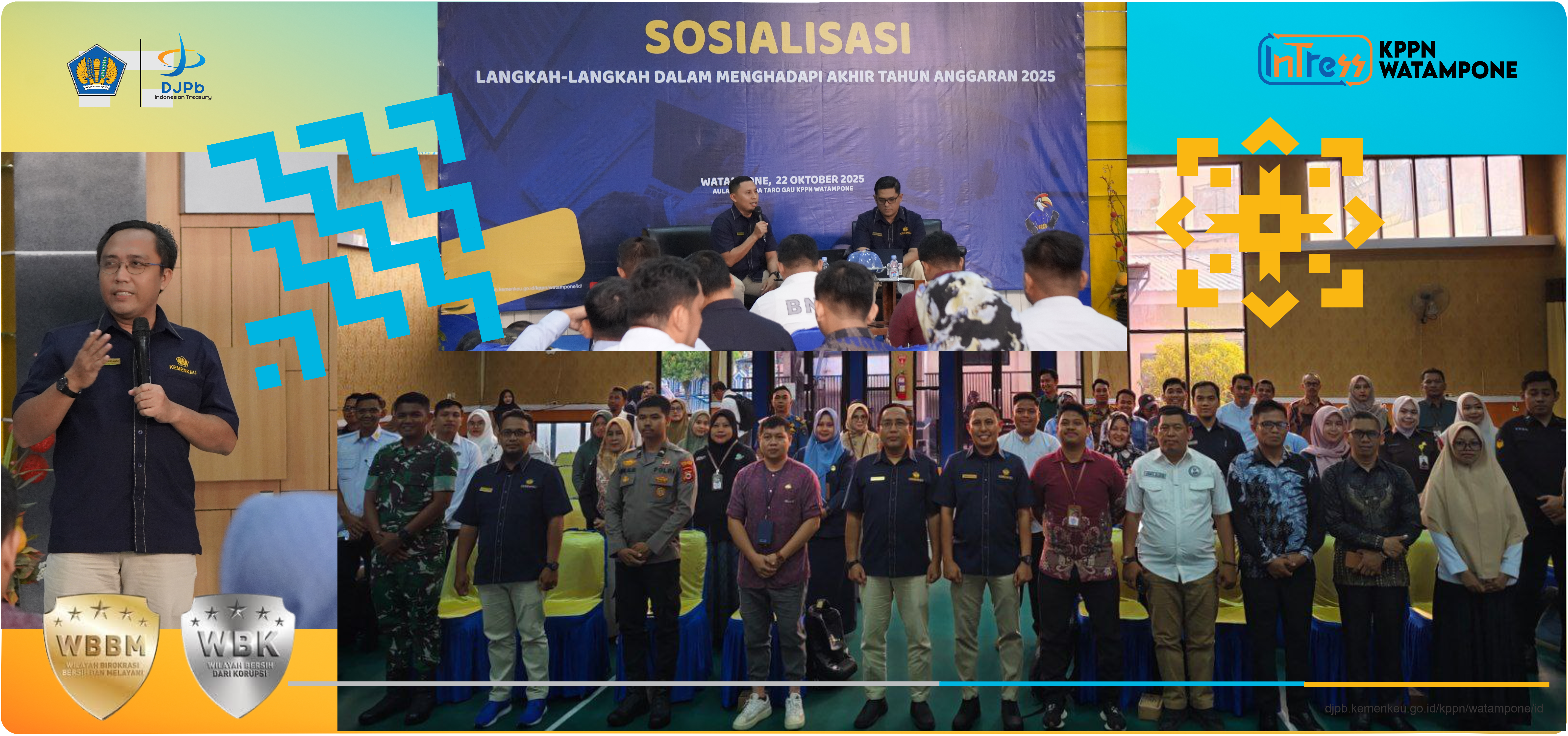 Kantor Pelayanan Perbendaharaan Negara (KPPN) Watampone, menggelar kegiatan Sosialisasi Peraturan Direktur Jenderal Perbendaharaan (Perdirjen) nomor PER-17/PB/2025 tentang Langkah-Langkah Dalam Menghadapi Akhir Tahun Anggaran 2025, yang diselenggarakan di Aula Taro Ada Taro Gau KPPN Watampone Rabu, 22 Oktober 2025. Kegiatan ini dihadiri oleh Bendahara satker lingkup wilayah pembayaran KPPN Watampone.