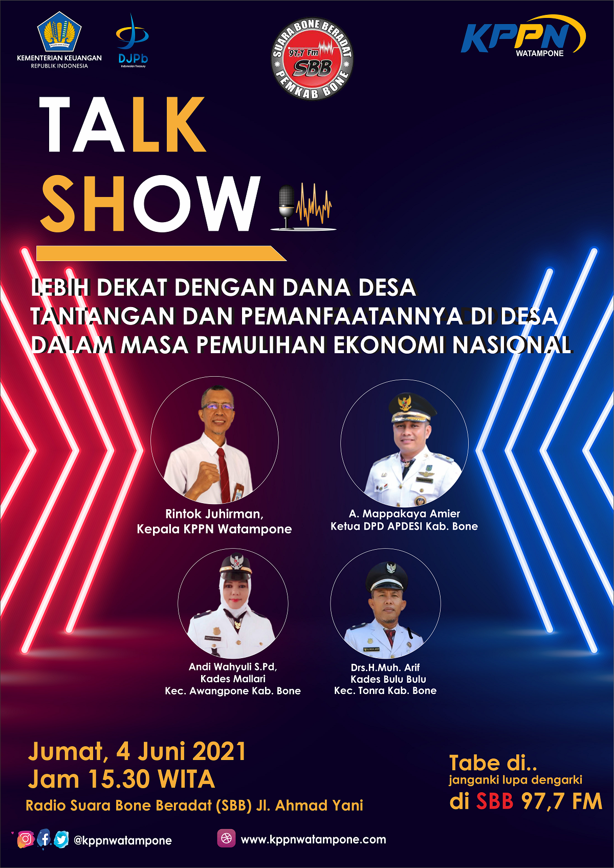 Kepala KPPN Watampone, Rintok Juhirman berharap di tengah pandemi Covid-19 saat ini, pelaku UMKM dapat memanfaatkan KUR sebagai salah satu sumber pembiayaan yang murah karena mendapatkan subsidi bunga dari Pemerintah. UMKM bangkit, Indonesia Kuat.
