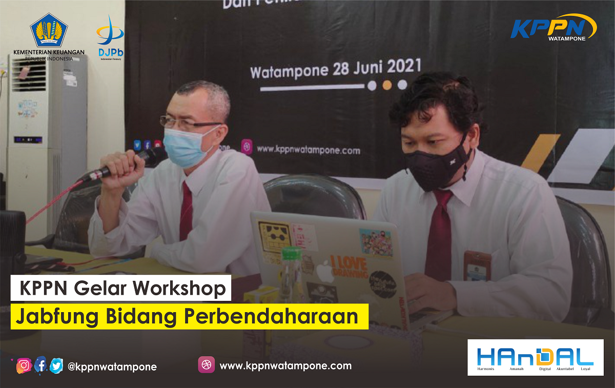 KPPN Watampone menggelar kegiatan Workshop Jabatan Fungsional (Jabfung) Bidang Perbendaharaan dan Penilaian Angka Kredit bertempat di Aula KPPN Watampone dengan tetap mematuhi protokol kesehatan, yang diikuti oleh Pejabat Fungsional Bidang Perbendaharaan Satker mitra kerja KPPN Watampone, Senin (28/06/2021).