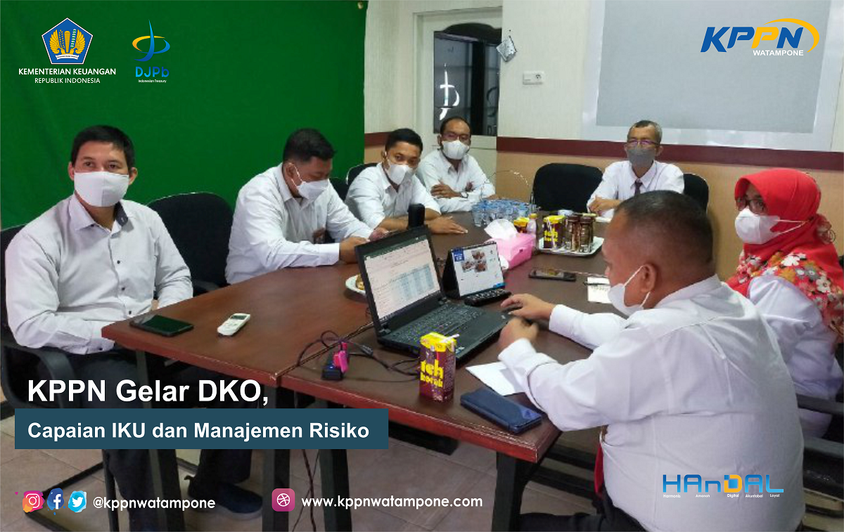 KPPN Watampone kembali menggelar Dialog Kinerja Organisasi (DKO) rutin bulanan bertempat di Ruang Rapat KPPN dengan mengambil tema “Capaian IKU dan Manajemen Risiko Semester I 2021” diikuti oleh Pejabat Pengawas, Fungsional dan pelaksana dengan tetap mematuhi protokol kesehatan, Senin (05/07/2021).
