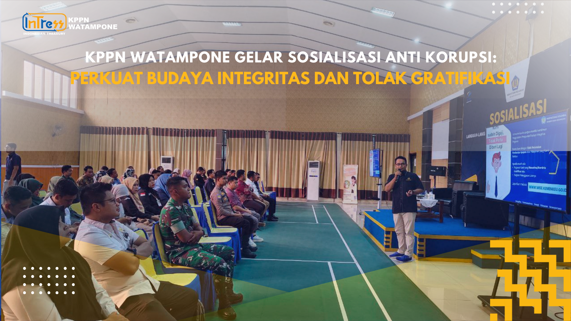 Kantor Pelayanan Perbendaharaan Negara (KPPN) Watampone kembali menunjukkan komitmennya dalam memperkuat nilai-nilai integritas melalui kegiatan Sosialisasi Anti Korupsi yang digelar pada Rabu (22/10/2025) bertempat di Aula Taro Ada Taro Gau KPPN Watampone. Kegiatan mulai pukul 09.00 hingga 13.00 WITA ini diikuti oleh 65 peserta dari satuan kerja KPPN Watampone.