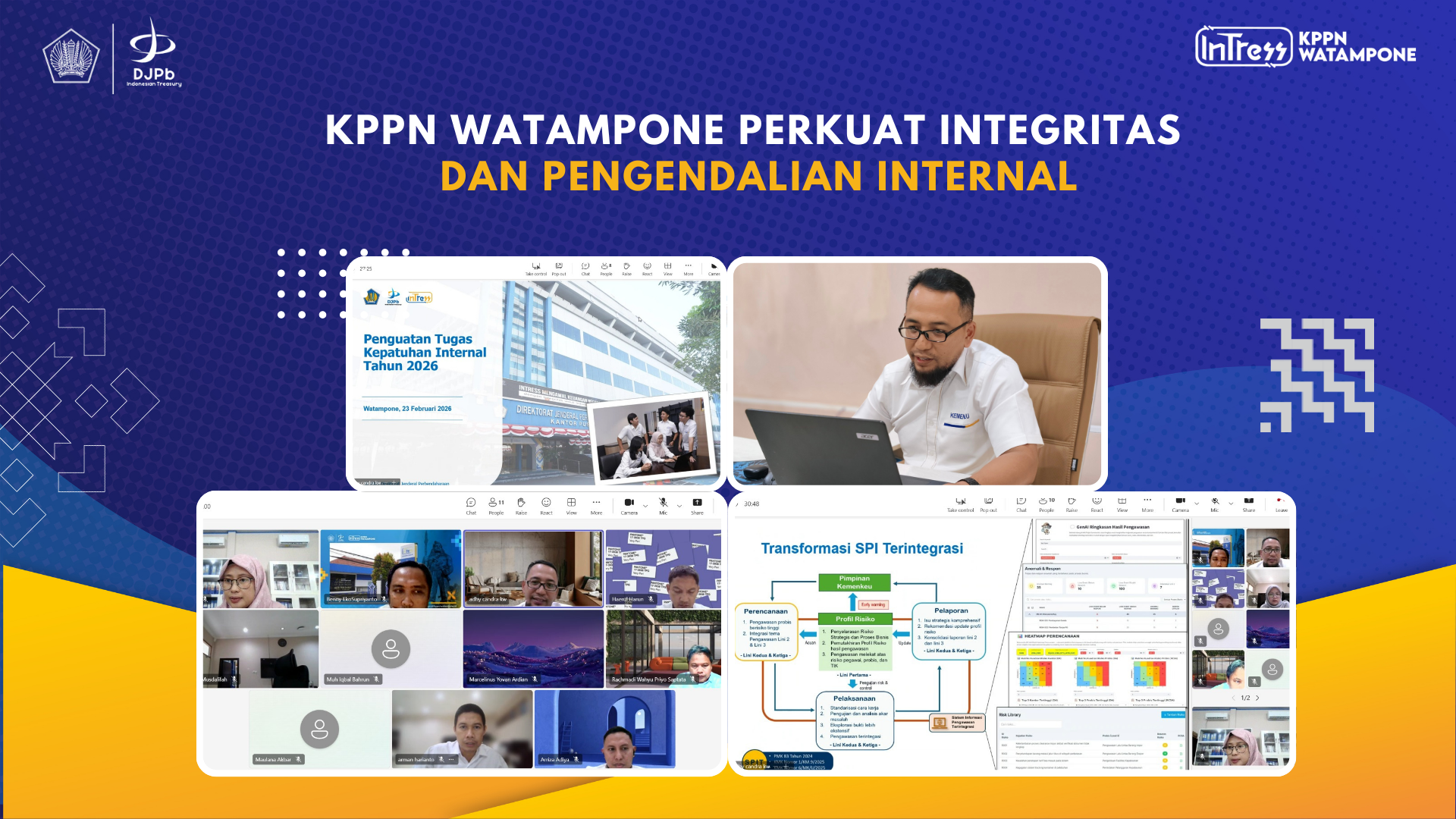 Kantor Pelayanan Perbendaharaan Negara Watampone (KPPN) Watampone kembali menegaskan komitmennya dalam memperkuat tata kelola organisasi melalui kegiatan GKM Sharing Session Triwulan I Tahun 2026 bertema “Penguatan Integritas dan Pengendalian Internal”. Kegiatan ini dilaksanakan secara daring melalui Microsoft Teams, Senin (23/2/2026), pukul 14.00–15.00 WITA dan diikuti seluruh pegawai.