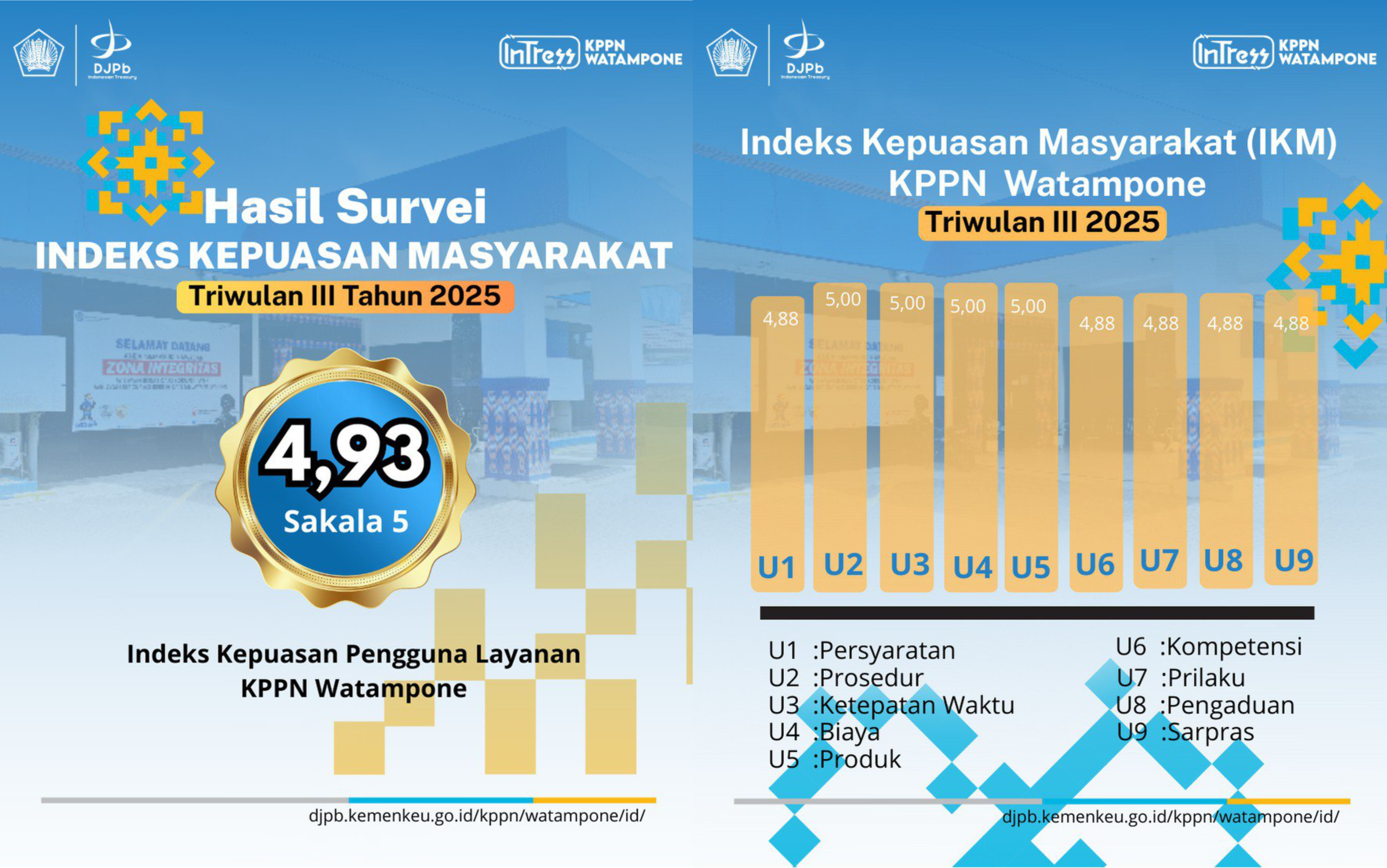 KPPN Watampone telah menyelesaikan Survei Kepuasan Masyarakat (SKM) Triwulan III Tahun 2025 dengan hasil nilai 4,93 dari skala 5, yang termasuk dalam kategori A (Sangat Baik).