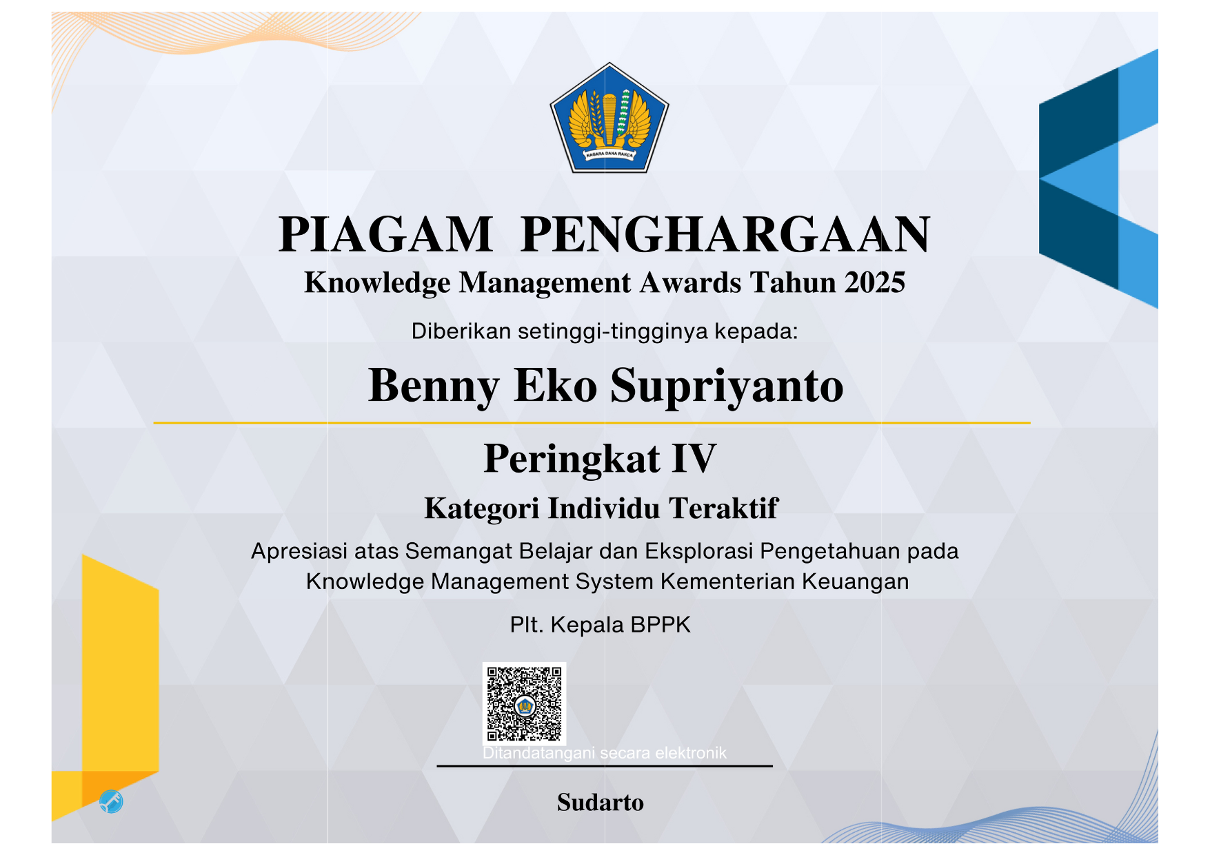 - Piagam Penghargaan Knowledge Management Awards Tahun 2025 Kategori Individu Teraktif