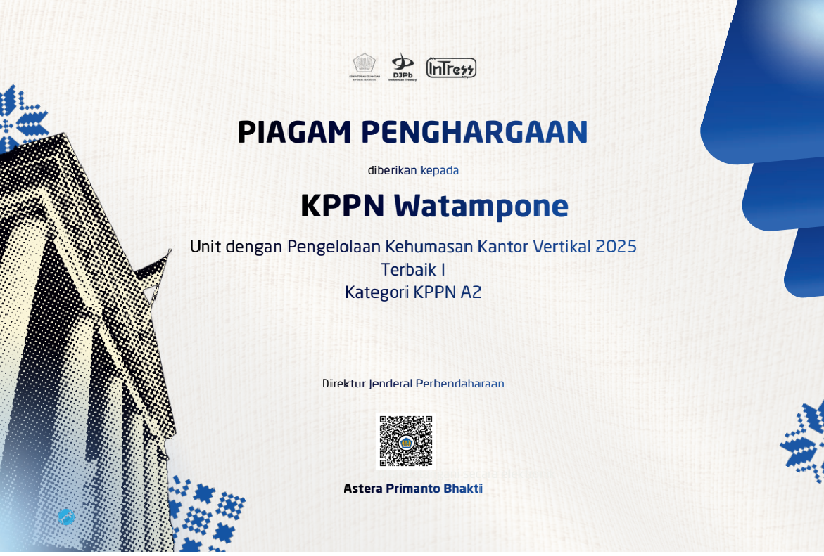 - Piagam Penghargaan KPPN Watampone Sebagai Juara III Pengelola Kehumasan DJPb Terbaik (Media Sosial) Tingkat KPPN 2022