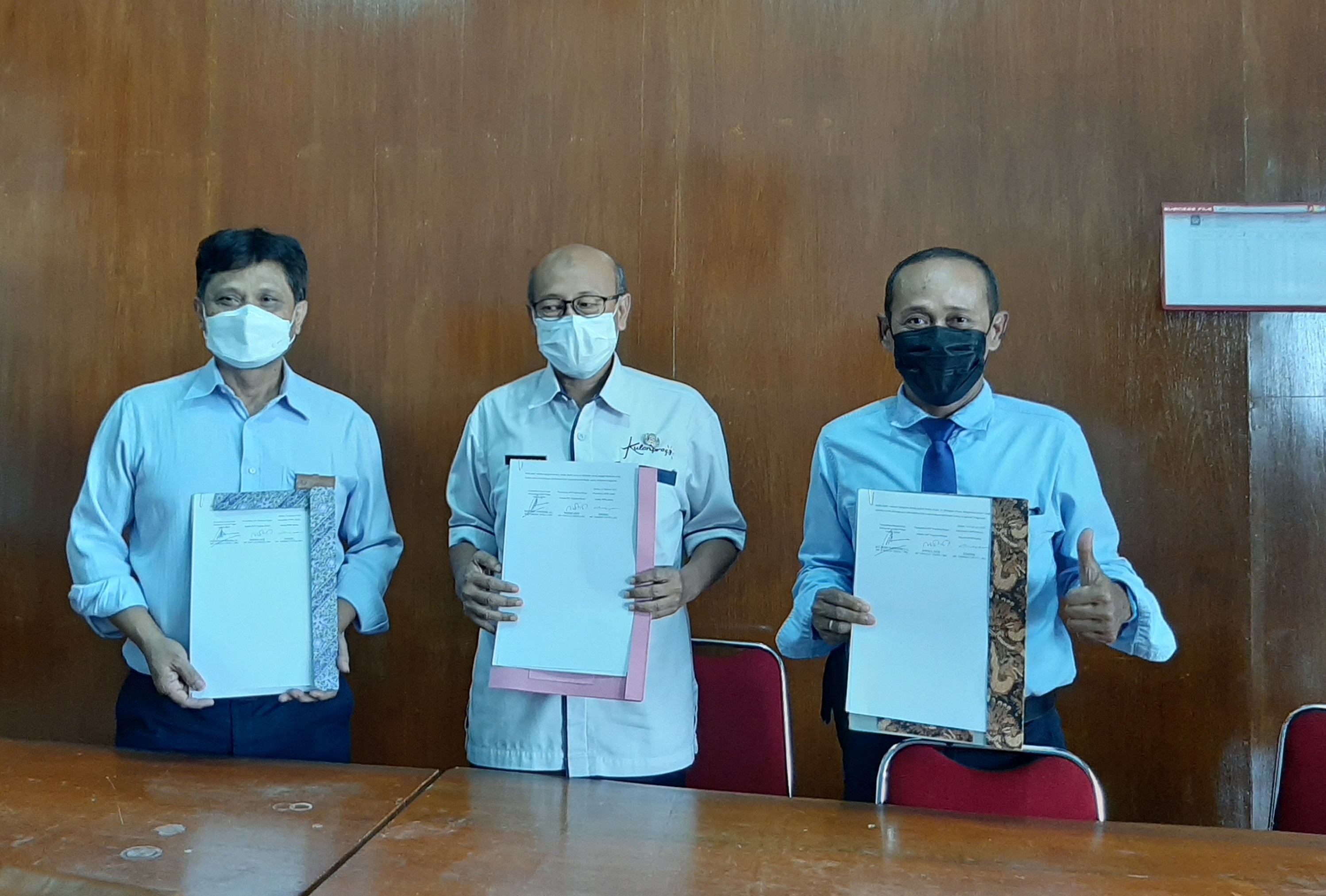 (kppn wates) - Bertempat di Ruang Rapat BKAD I Kabupaten Kulon Progo, tanggal 23 Februari 2022, dilakukan rekonsiliasi Pajak Pusat yang Disetorkan ke Kas Negara berdasarkan Transaksi Pengeluaran yang Dibayarkan atas Beban APBD periode Semester II Tahun 2021. Penandatanganan Berita Acara Rekonsiliasi (BAR), oleh Kepala KPPN Wates, Kepala KPP Pratama Wates, dan Kepala BKAD Kabupaten Kulon Progo.