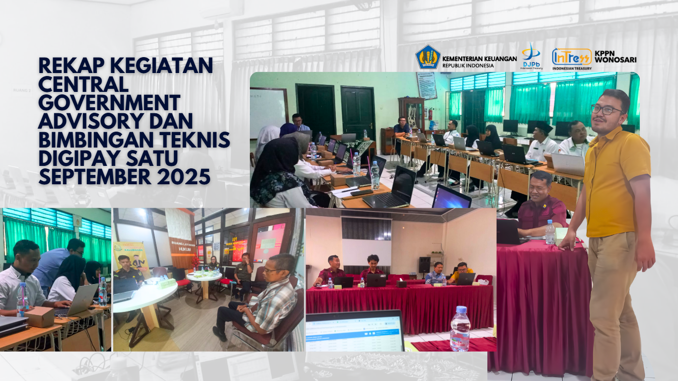 Di penghujung bulan September 2025, Dalam rangka meningkatkan kualitas pengelolaan keuangan negara dan mendukung percepatan transformasi digital, KPPN Wonosari menyelenggarakan kegiatan Central Government Advisory dan Bimbingan Teknis Digipay Satu dengan tema “Strategi IKPA Optimal dan Akselerasi Digital Keuangan bersama Digipay Satu.”