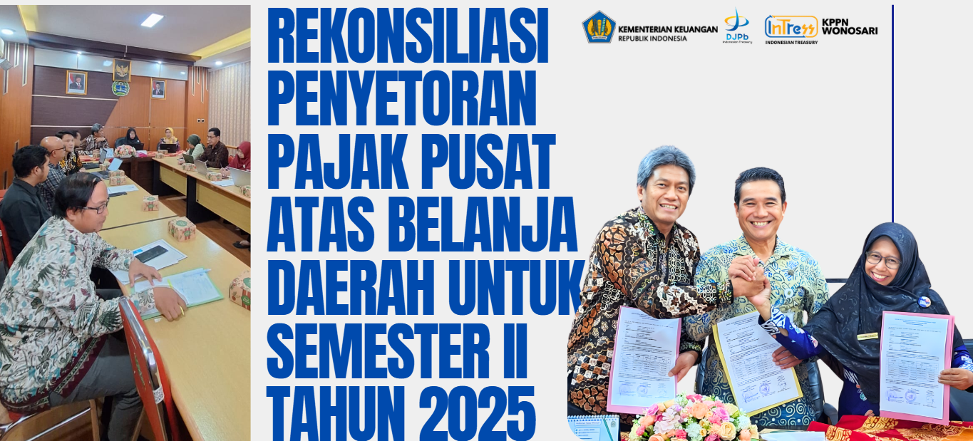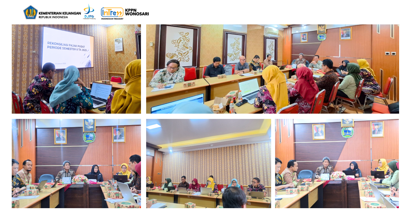 Kegiatan Rekonsiliasi Penyetoran Pajak Pusat atas Belanja Daerah untuk Semester II Tahun 2025 telah dilaksanakan dengan sukses oleh KKPPN Wonosari, KPP Pratama Wonosari, dan Pemerintah Daerah Kabupaten Gunungkidul. Kegiatan ini diselenggarakan pada Kamis, 29 Januari 2026 di Ruang Rapat Adhipraya (RR I) BKAD Kabupaten Gunungkidul, mulai pukul 13.30 WIB.