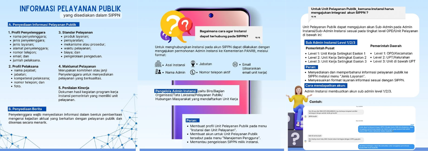 Integrasi Sistem Informasi Pelayanan Publik Nasional (SIPPN) melalui laman https://sippn.menpan.go.id merupakan salah satu langkah strategis dalam agenda reformasi birokrasi nasional yang diinisiasi oleh Kementerian PANRB untuk mewujudkan pelayanan publik yang terpadu, transparan, dan akuntabel. SIPPN berfungsi sebagai pusat data nasional yang menghimpun informasi standar pelayanan dari seluruh instansi pemerintah, sehingga masyarakat dapat mengakses informasi layanan publik secara mudah, cepat, dan seragam dalam satu platform. Kehadiran sistem ini menjadi jawaban atas kebutuhan akan keterbukaan informasi dan standarisasi layanan di tengah tuntutan masyarakat terhadap pelayanan publik yang semakin berkualitas dan responsif.