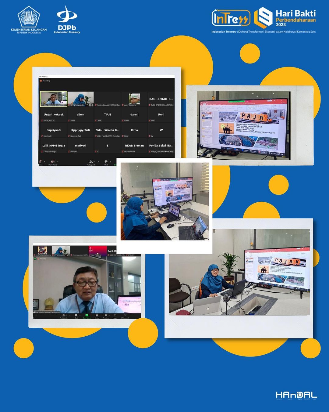 Kegiatan FGD Pengelolaan Penyaluran Dana Transfer Umum (DAU dan DBH) Tahun 2023 dilaksanakan pada hari Rabu tanggal 1 Februari 2023 pukul 13.00 s.d. 15.00 WIB melalui zoom meeting dengan dihadiri oleh Pejabat/Pegawai KPPN Yogyakarta, Pengelola DAU dan DBH dari BPKA DIY, BPKPAD Kab. Bantul, BPKPAD Kab. Sleman, BKAD Kota Yogyakarta.