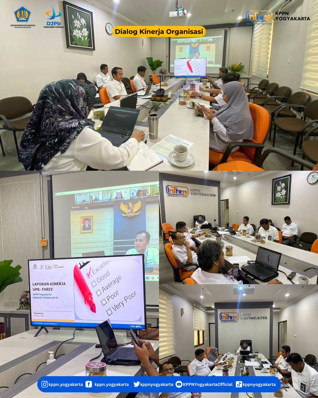 | KPPN Yogyakarta (8/1) melaksanakan Dialog Kinerja Organisasi (DKO) dan Rapat Pemantauan Manajemen Risiko Periode Triwulan IV Tahun 2023. Agenda yang dibahas dalam rapat tersebut adalah capaian seluruh IKU Kemenkeu-Four masing-masing subbag/seksi KPPN Yogyakarta. Rapat dilanjutkan dengan pembahasan terkait Pemantauan Manajemen Risiko Triwulan IV 2023 oleh Kepala Seksi MSKI Arif Kurniawan. | |