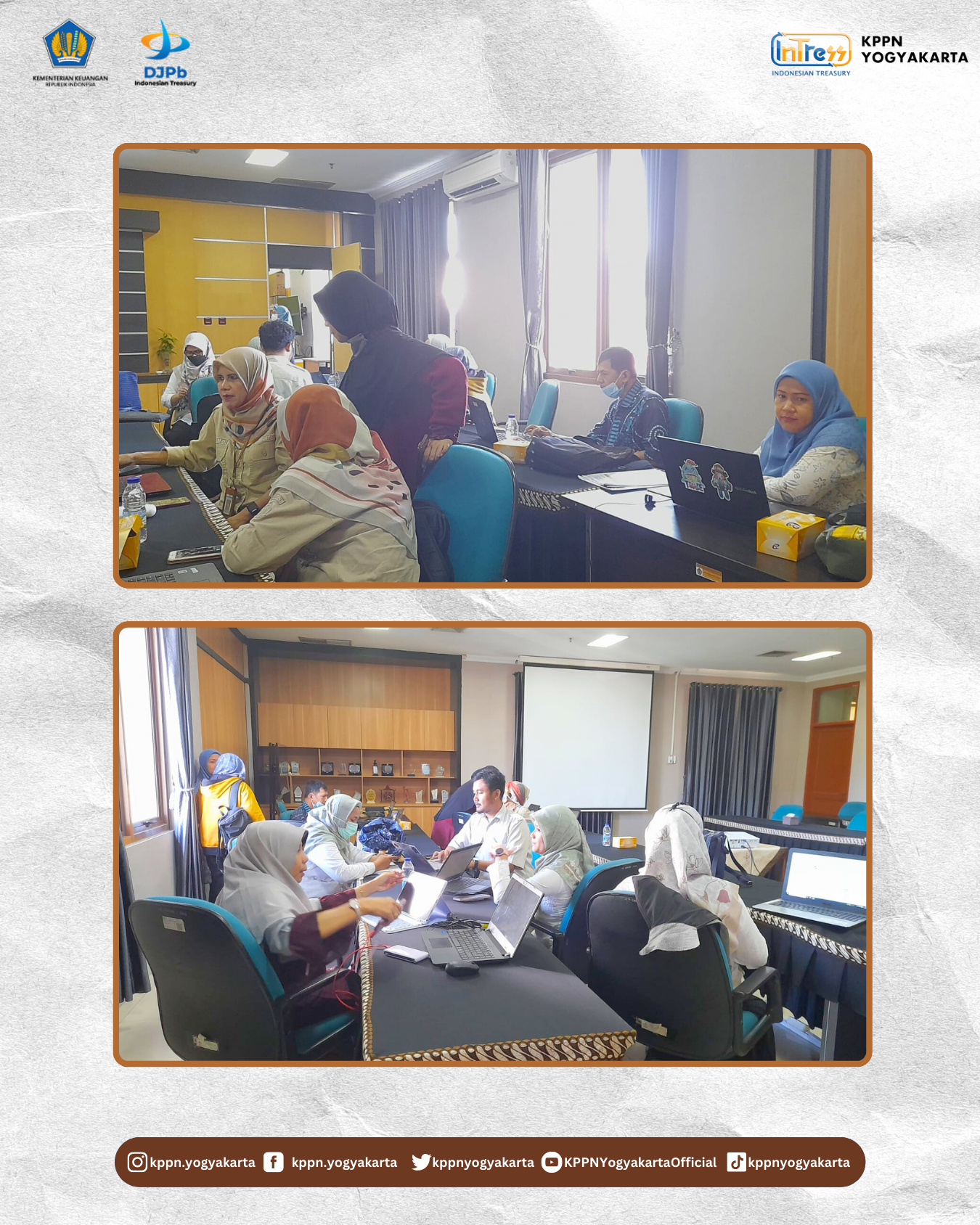 Dalam rangka mengoptimalkan nilai LK BUN kriteria partisipasi, maka seksi Verifikasi dan Akuntansi KPPN Yogyakarta melaksanakan kegiatan Asistensi Penyusunan Laporan Keuangan atau KLINIK AKUNTANSI LPJ Bendahara dan Rekonsiliasi bulan Mei 2024. Kegiatan ini dilaksanakan selama dua hari pada tanggal 7 & 8 Mei 2024 berlokasi di ruang GKM Lantai II KPPN Yogyakarta.