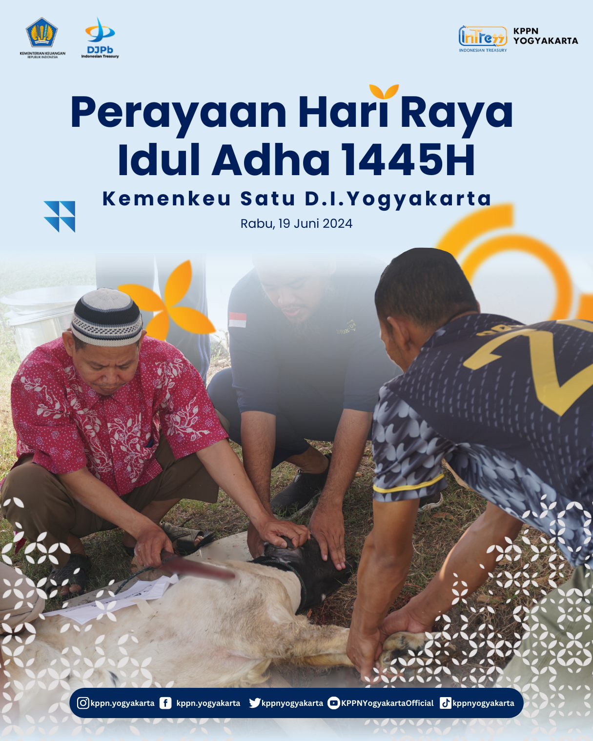 Dalam rangka memperingati Hari Raya Idul Adha 1445 H dan sebagai wujud rasa syukur atas nikmat yang diberikan oleh sang pencipta. Kemenkeu satu perwakilan D.I. Yogyakarta menyelenggarakan penyembelihan hewan kurban pada hari ini, Rabu (19/6/2024) di Lapangan Gedung Keuangan Negara Yogyakarta dan Kanwil Direktorat Jenderal Pajak (DJP) Yogyakarta. Kegiatan ini dilaksanakan sebagai bentuk sinergi Kemenkeu satu Yogyakarta yang terdiri atas kanwil DJPb DIY, Kanwil DJP DIY, KPPN Yogyakarta, KPPN Wates, KPPN Wonosari, KPP Pratama Yogyakarta, KPP Pratama Wates, KPP Pratama Wonosari, KPPBC Yogyakarta, BDK Yogyakarta dan KPKNL Yogyakarta. Kepala Perwakilan Kemenkeu DIY yang juga Kepala Kanwil DJPb DIY, Agung Yulianta turut hadir di lokasi untuk memantau penyembelihan hewan kurban. Jumlah hewan Kurban di GKN Yogyakarta terdiri dari 1 ekor sapi dan 3 ekor kambing dan di Kanwil Pajak 3 ekor sapi dan 1 ekor kambing dari pegawai Kemenkeu Satu Yogyakarta beserta keluarga, dimana daging kurban diberikan kepada PPNPN, sekuriti, CS,OB, dan marbot masjid di kantor-kantor Kemenkeu Satu serta warga di sekitar GKN Yogyakarta yang berhak menerima. |