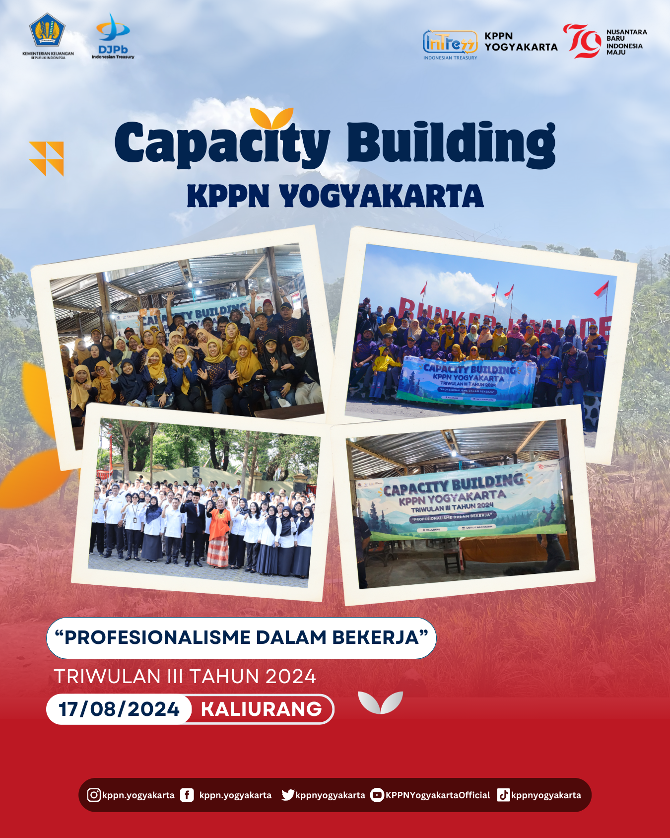 Dengan adanya kegiatan Capacity Building ini diharapkan dapat meningkatkan kompetensi dan kapabilitas pegawai KPPN Yogyakarta. Hal ini sejalan dengan upaya untuk terus memperbaiki kualitas layanan yang diberikan kepada seluruh stakeholder dengan profesional. |