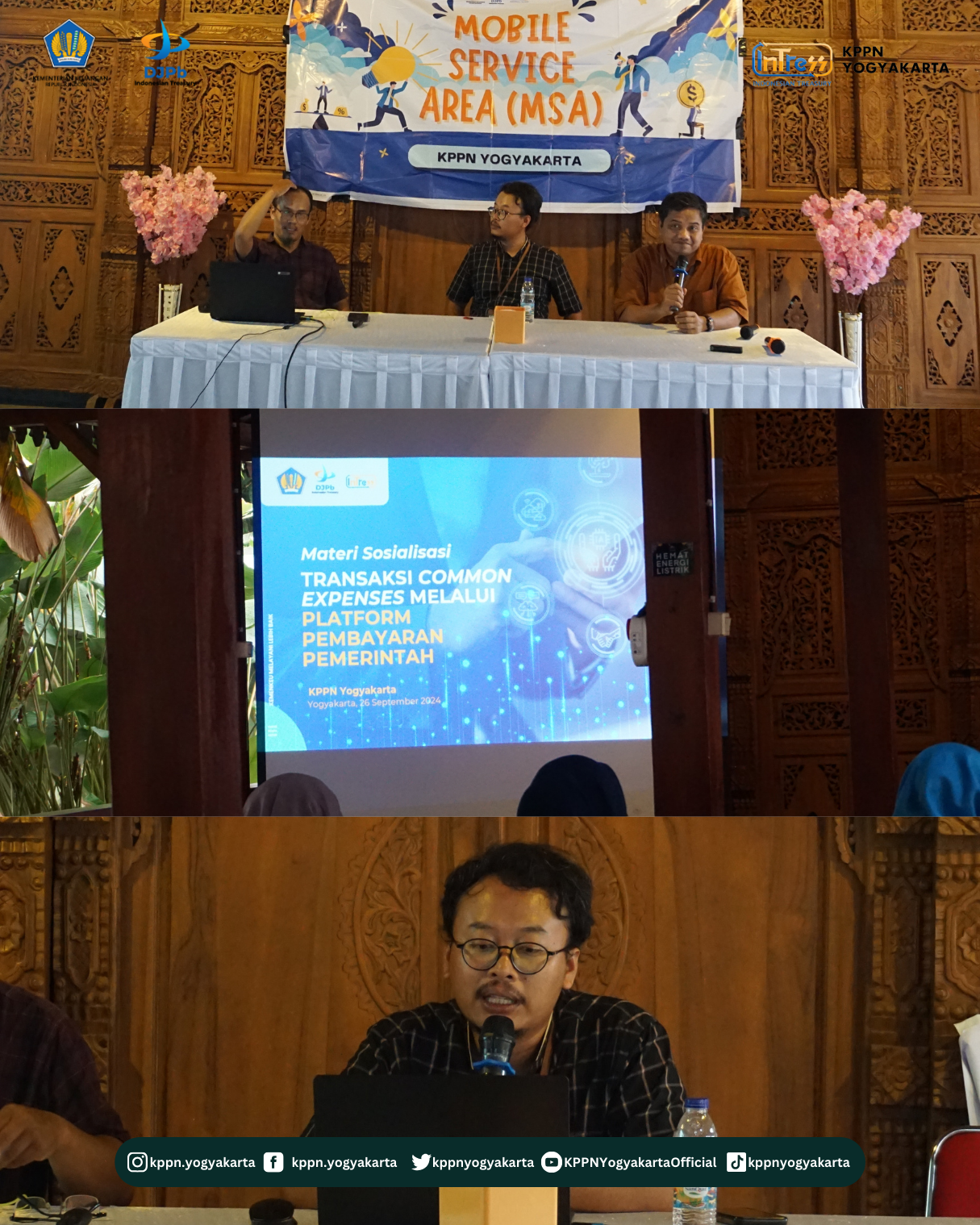 | Telah dilaksanakan Mobile Service Area (MSA) Triwulan III 2024 yang bertempat di Reto Limasan Klampik pada Kamis, 26 September 2024. MSA adalah salah satu inovasi untuk mendekatkan stakeholders dalam Konsultasi ke Resepsionist KPPN Yogyakarta dengan harapan dapat meningkatkan kualitas dan mutu layanan KPPN Yogyakarta kepada para peserta, khususnya dalam Langkah-Langkah Perbaikan di Tahun 2024, upaya peningkatan kualitas indicator kinerja pelaksanaan anggaran (IKPA) serta meningkatkan Cashless Sociaty melalui Digipay. | |