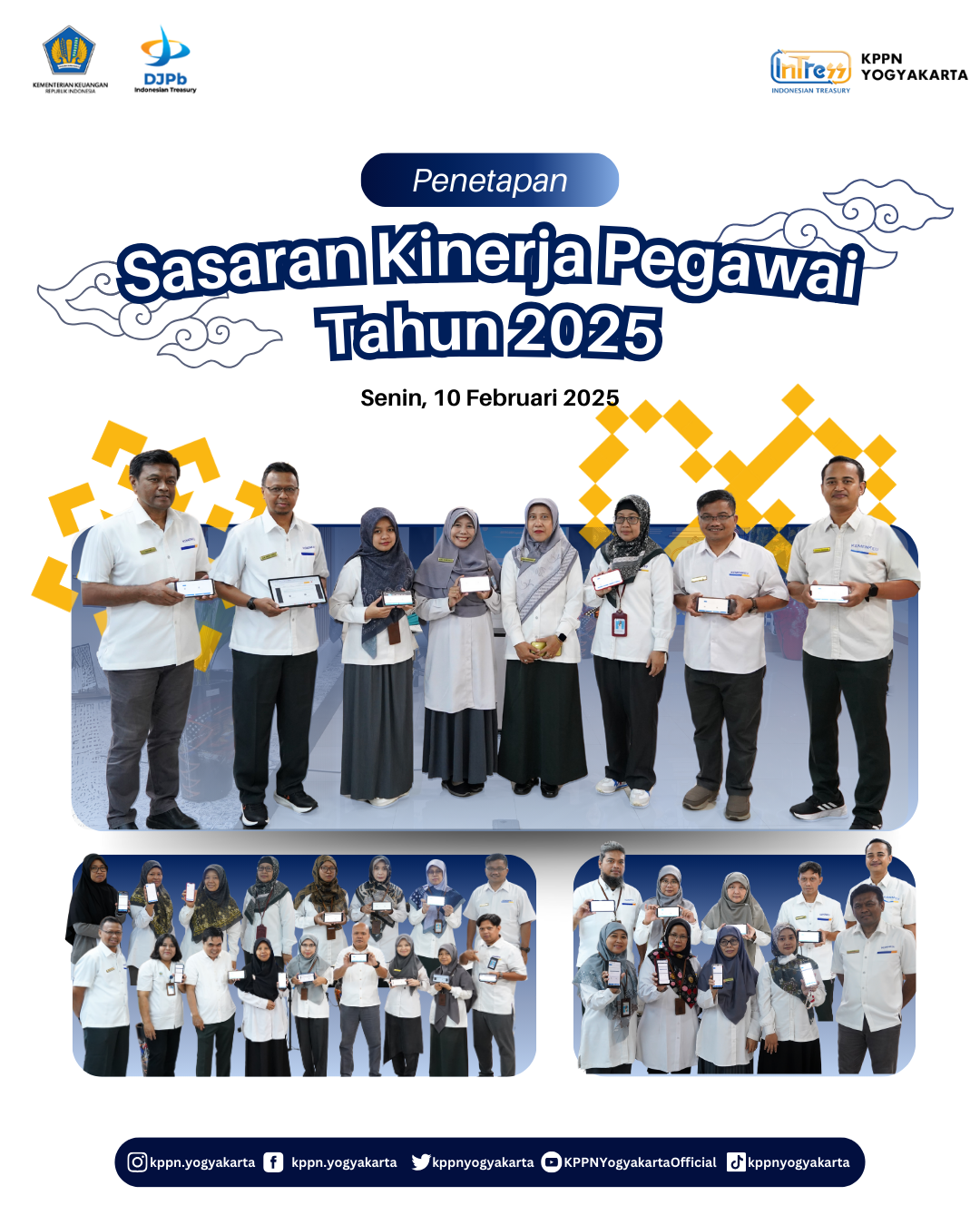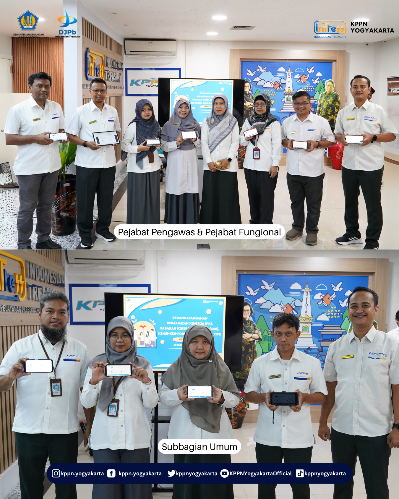 | Pada Senin, 10 Februari 2025 bertempat di Area Fresh Office KPPN Yogyakarta dilaksanakan Penetapan SKP antara Pejabat Administrator dengan Pejabat Pengawas dan Pejabat Fungsional, dan Pejabat Pengawas dengan bawahannya melalui Aplikasi SATU KEMENKEU. | |