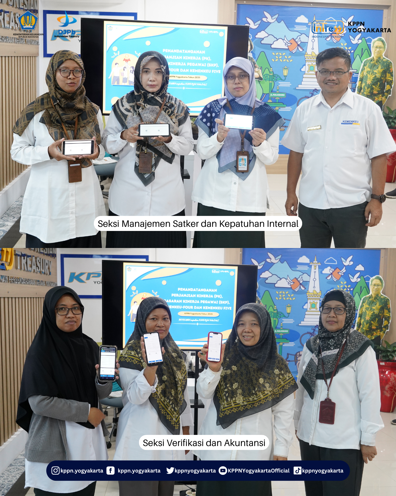 | Semoga penetapan SKP ini menjadi komitmen kuat insan treasury KPPN Yogyakarta untuk terus meningkatkan kualitas pelayanan kepada masyarakat, mendukung tercapainya tujuan bernegara, dan mewujudkan tata kelola keuangan negara yang transparan dan akuntabel. | |