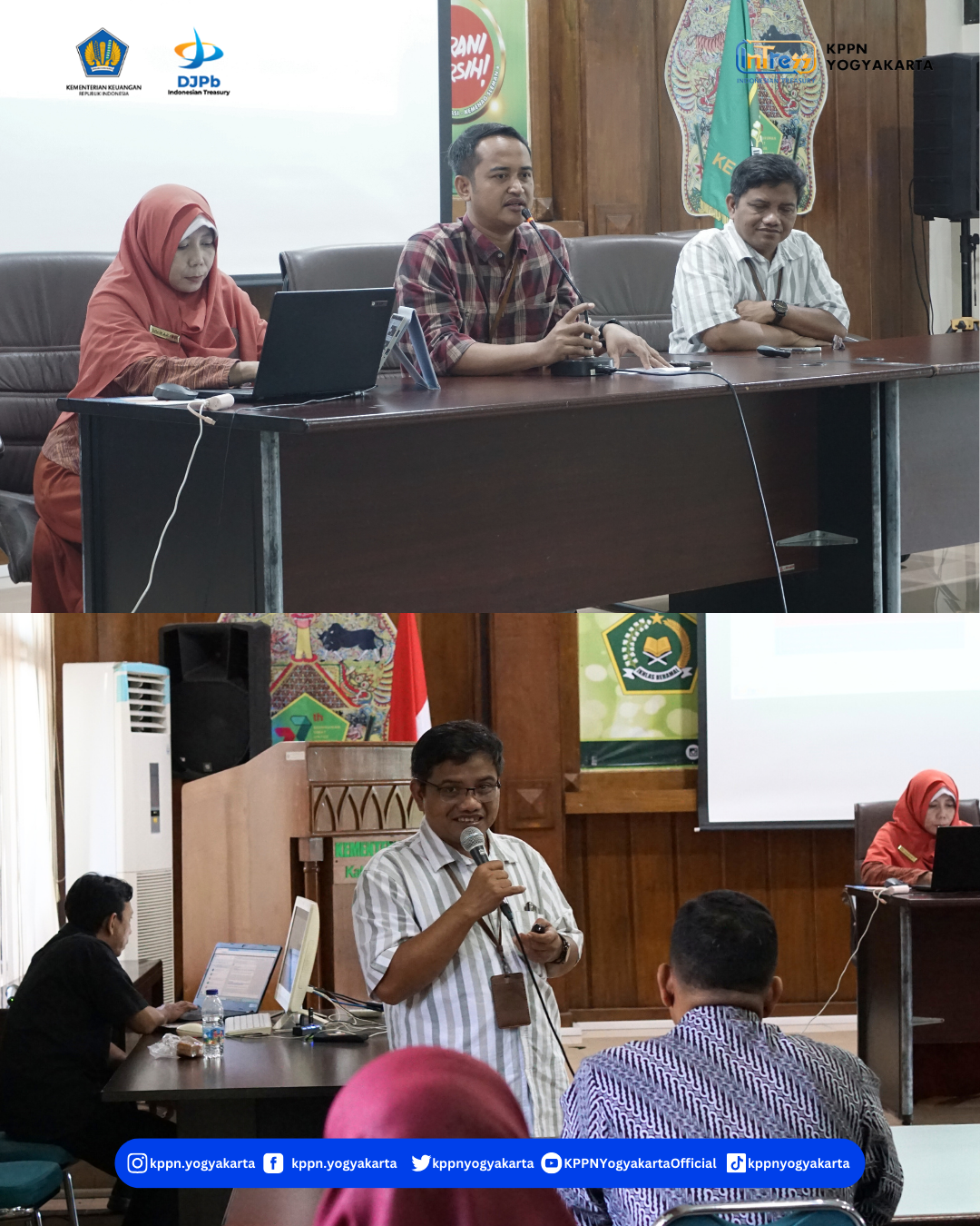 | Telah dilaksanakan Mobile Service Area (MSA) Triwulan I dan II 2025 yang bertempat di Aula Pertemuan Kementerian Agama Kab. Sleman pada tanggal 24 April 2025. MSA adalah salah satu inovasi untuk mendekatkan stakeholders dalam Konsultasi ke Resepsionist KPPN Yogyakarta dengan harapan dapat meningkatkan kualitas dan mutu layanan KPPN Yogyakarta kepada para peserta, khususnya dalam Evaluasi, Monitoring dan Pendampingan Implementasi CMS, KKP/KKPD dan Digipay, Implementasi PKIPA pada Aplikasi SAKTI serta Sosialisasi Capaian Output. |