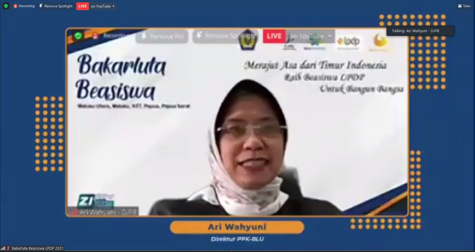 "Pemulihan dan akselerasi pertumbuhan ekonomi pascapandemi perlu diraih untuk mengoptimalkan bonus demografi dan reformasi struktrural untuk meningkatkan produktivitas guna mendukung visi Indonesia Maju 2045. Salah satu reformasi struktural pascacovid adalah meningkatkan potensi ekonomi dari sisi supply, antara lain kualitas SDM melalui reformasi perlindungan sosial, kesehatan, dan pendidikan. Sinergi BLU, LPDP, dan civitas akademika diharapkan dapat meningkatkan kualitas SDM dan mendorong indeks pembangunan manusia kawasan timur pada khususnya dan Indonesia pada umumnya," jelas Direktur Pembinaan Pengelolaan Keuangan BLU Ditjen Perbendaharaan Ari Wahyuni selaku pimpinan Unit Pembina Keuangan BLU.