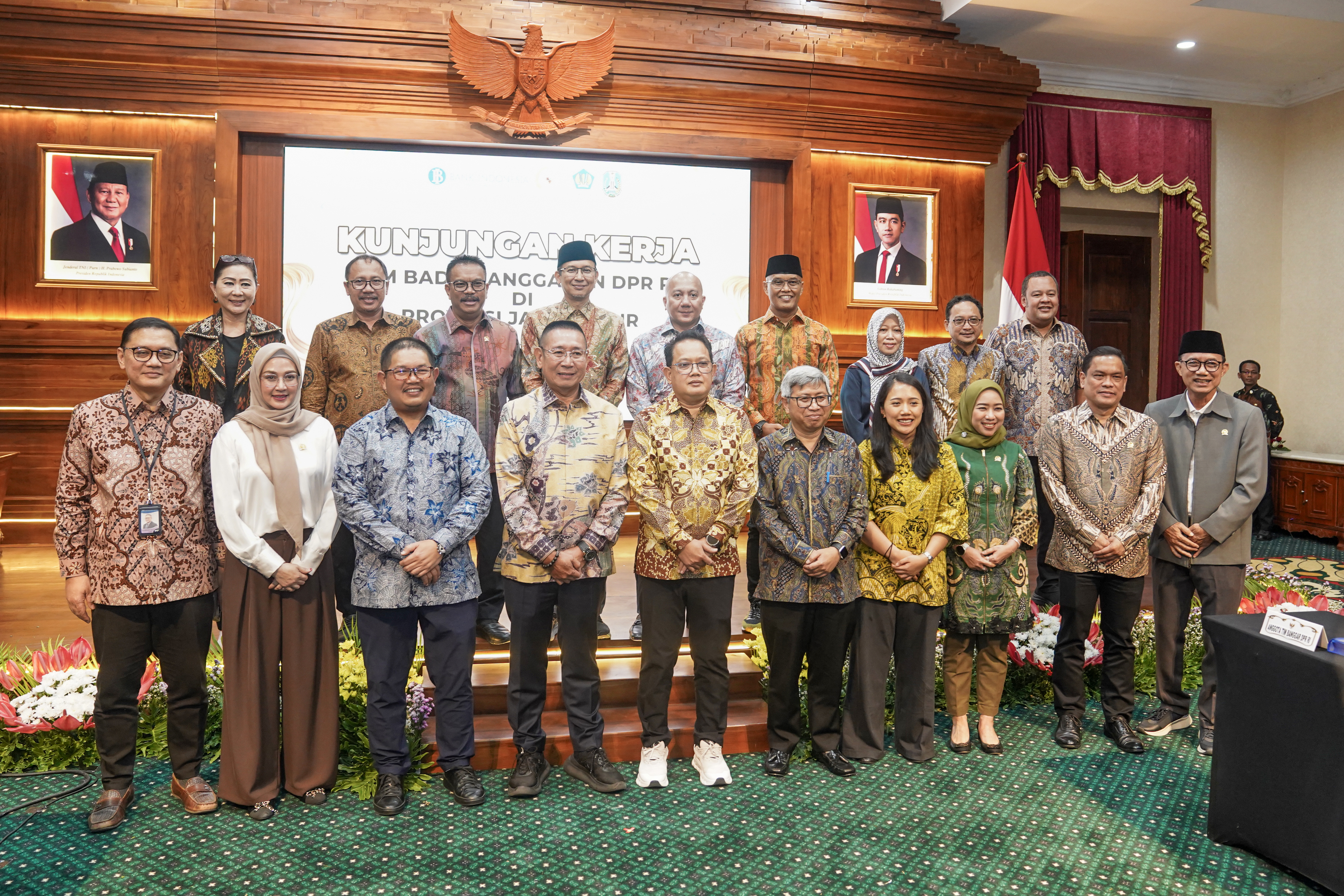Dirjen Perbendaharaan menghadiri Kunjungan Kerja Badan Anggaran DPR RI ke Provinsi Jawa Timur pada Kamis (28/11). Bertempat di Gedung Negara Grahadi, Surabaya, pertemuan yang dipimpin Wakil Ketua Badan Anggaran DPR RI Wihadi Wiyanto membahas isu-isu strategis, seperti perkembangan ekonomi dan fiskal, realisasi dana transfer, dan persoalan disparitas fiskal di Jawa Timur. Selain Direktur Jenderal Perbendaharaan Astera Primanto Bhakti, pada forum tersebut hadir Penjabat Gubernur Jawa Timur Adhy Karyono, seluruh Kepala Daerah dan Penjabat Kepala Daerah lingkup Provinsi Jawa Timur, seluruh pimpinan Kemenkeu Satu Provinsi Jawa Timur, Kepala Perwakilan Bank Indonesia Provinsi Jawa Timur, serta para pejabat pendamping.