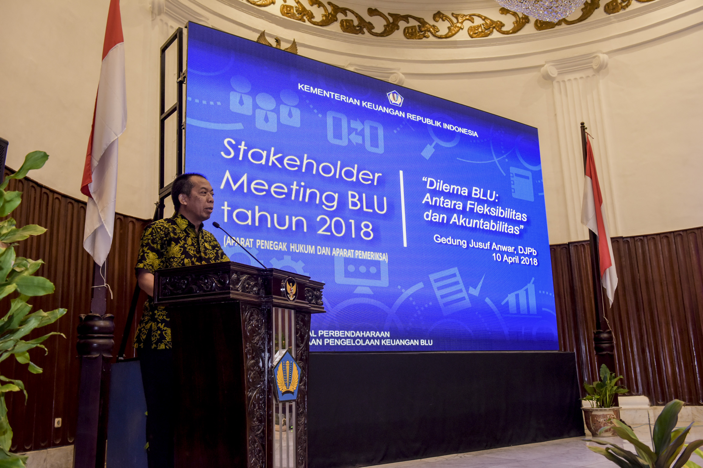 Di sela sambutannya, Direktur PPK Badan Layanan Umum, Djoko Hendratto mengatakan kepada peserta yang merupakan Aparat Pengawasan Intern Pemerintah (APIP) bahwa BLU tidak mungkin berdiri sendiri tanpa adanya pengatur dan pembina di tengah-tengah ekosistem di mana sistem tata negara Indonesia menunjuk BPK selaku pihak yang melakukan pengawasan terhadap semua aktivitas pemerintahan serta Kepolisian yang menjadi penegak hukum. “Tidak (boleh) terjadi miscommunication di antara para pelaku di dalam ekosistem tata kelola (dan) tata kerja BLU secara overall,” tambah Djoko.