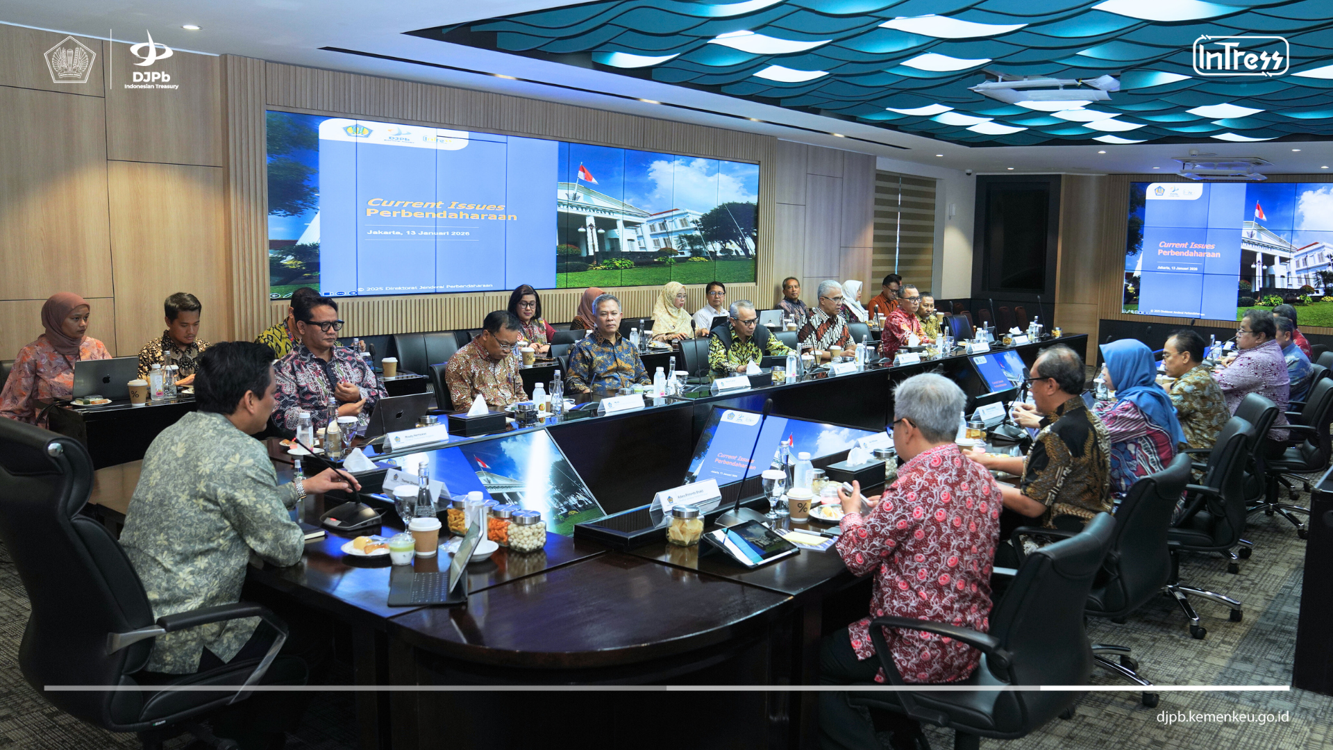 Jakarta, djpb.kemenkeu.go.id,- Wakil Menteri Keuangan Thomas Djiwandono memimpin rapat kerja bersama jajaran Direktorat Jenderal Perbendaharaan (DJPb) pada Selasa (13/01) di Kantor Pusat DJPb, Jakarta. Rapat kerja tersebut membahas isu strategis perbendaharaan dan current issues fiskal sebagai upaya menyelaraskan kebijakan perbendaharaan dalam menghadapi tantangan pengelolaan Anggaran Pendapatan dan Belanja Negara (APBN).