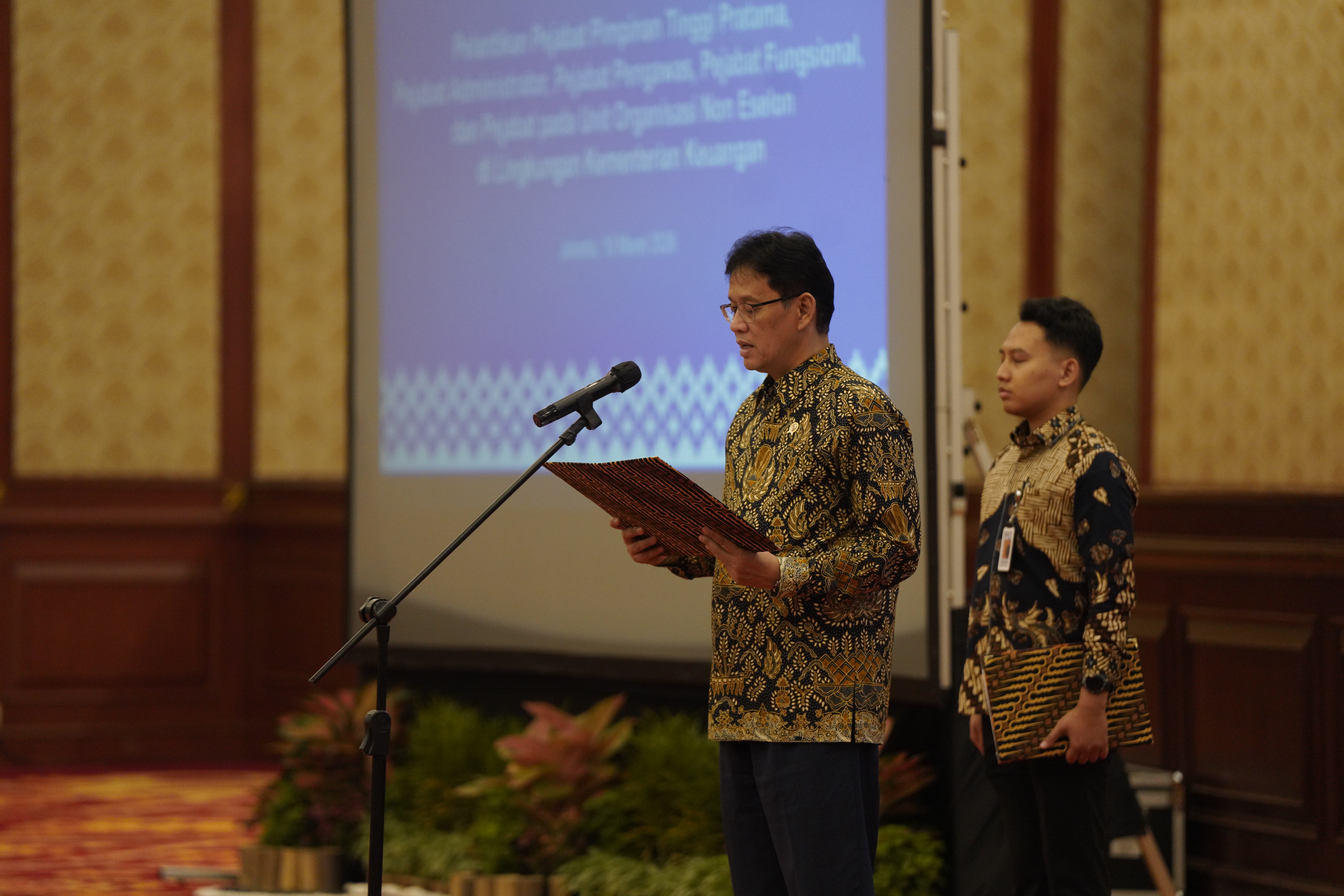 Jakarta, Selasa (10/03/2026) – Menteri Keuangan Purbaya Yudhi Sadewa melantik dan mengambil sumpah 1.585 pejabat di lingkungan Kementerian Keuangan pada Selasa, 10 Maret 2026 di Gedung Dhanapala Kementerian Keuangan. Pelantikan ini mencakup 44 Pejabat Pimpinan Tinggi Pratama, Pejabat Administrator, Pejabat Pengawas, Pejabat Fungsional, serta Pejabat pada Unit Organisasi Non Eselon di lingkungan Kementerian Keuangan termasuk di lingkungan Direktorat Jenderal Perbendaharaan. Kegiatan turut dihadiri oleh Wakil Menteri Keuangan dan para pejabat pimpinan tinggi madya Kementerian Keuangan, termasuk Dirjen Perbendaharaan Astera Primanto Bhakti.
